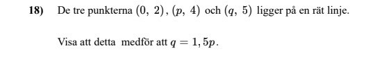Denna ekvation ska gälla för de två halvkända punkterna (p, 4) och (q, 5).