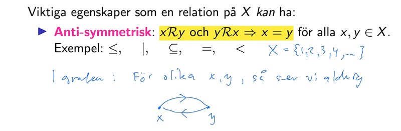 Jag fattar inte hur man kan förklara hur relationen är anti-symmetrisk samt transitiv? Jag förstår defintionerna men jag tycker att facits svar är otydlig...
