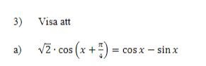 Visa att, roten ur 2*cos(x+pi/4)=cox-sinx