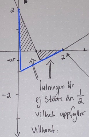 Sockerkakan 1 skrev:Så brant som den tillåter, alltså 1/2?