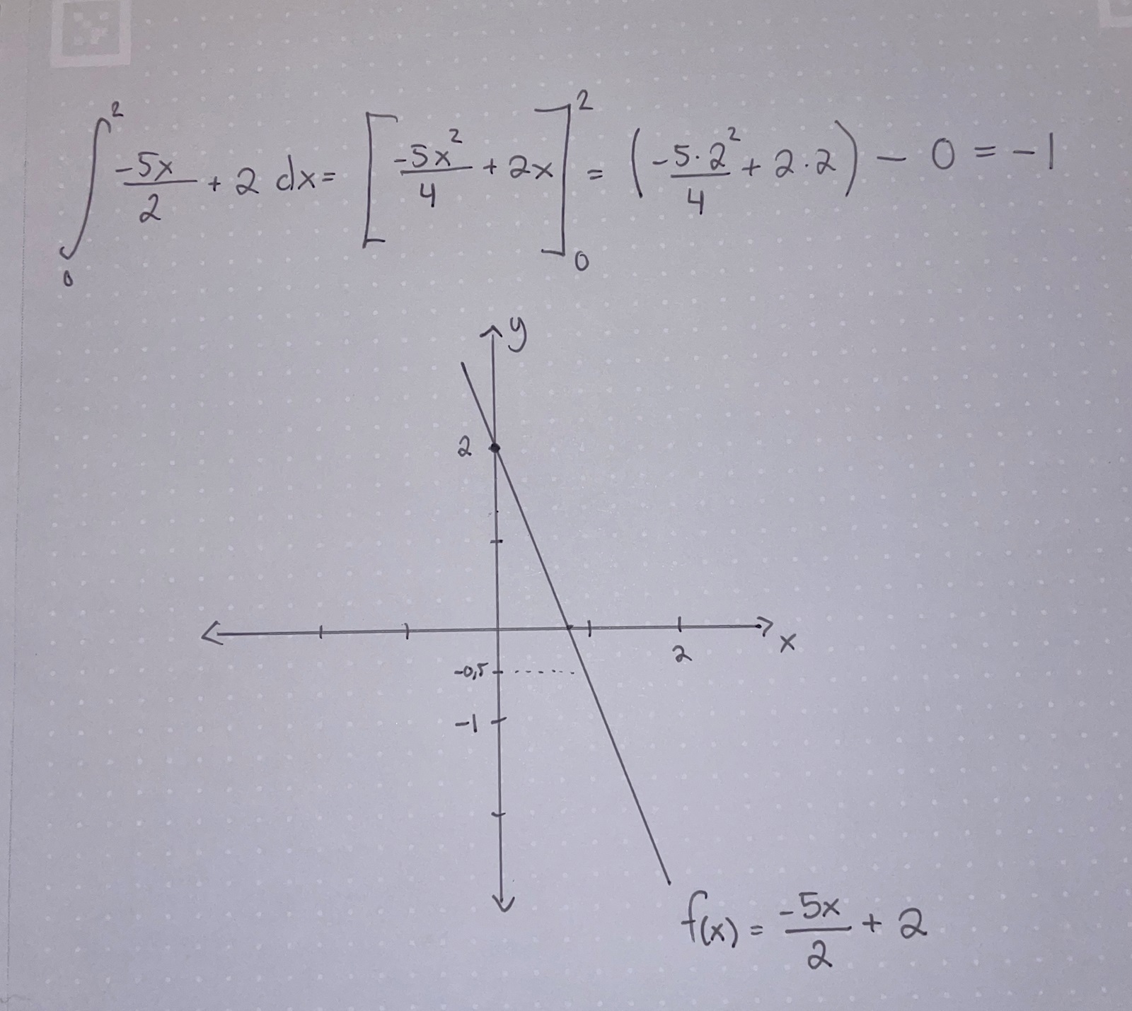 I din första ansats när du sökte integralens maximala värde har du försökt få funktionsgrafen att ligga så högt ovanför x-axeln som möjligt, detta genom att utgå från den givna punkten (0, 2) och sedan följa den maximala lutningen 1/2 så långt du bara kan.