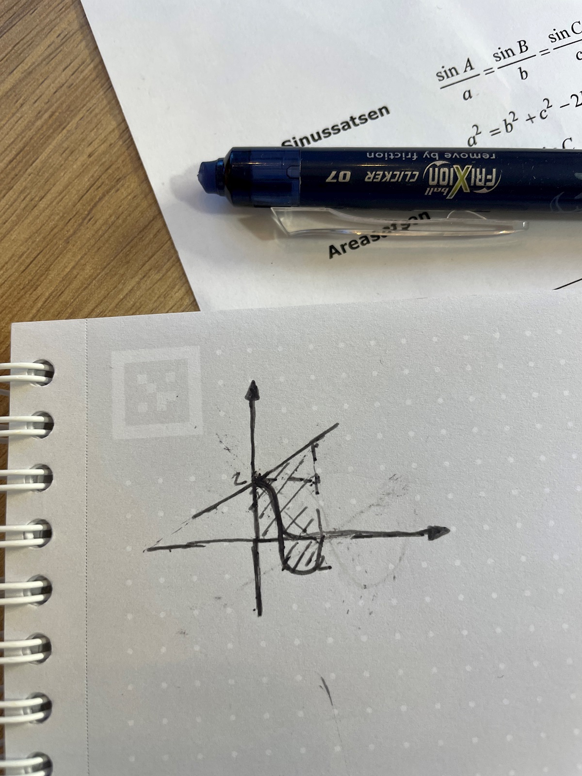 Det betyder att det blir en yttepyttesmal strimma som inte ingår i området. Bidraget till integralen är nästan försumbart, men leder till att integralens värde definitivt är mindre än 5.