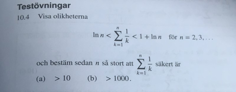 Jag har löst a och b, men kan inte visa varför det gäller. Jag tänkte använda den här satsen från boken, och det stämmer nästan, men vad händer med den första biten, f(n)? Jag vill ha med ett 1/n först i olikheten, varför är det borta?