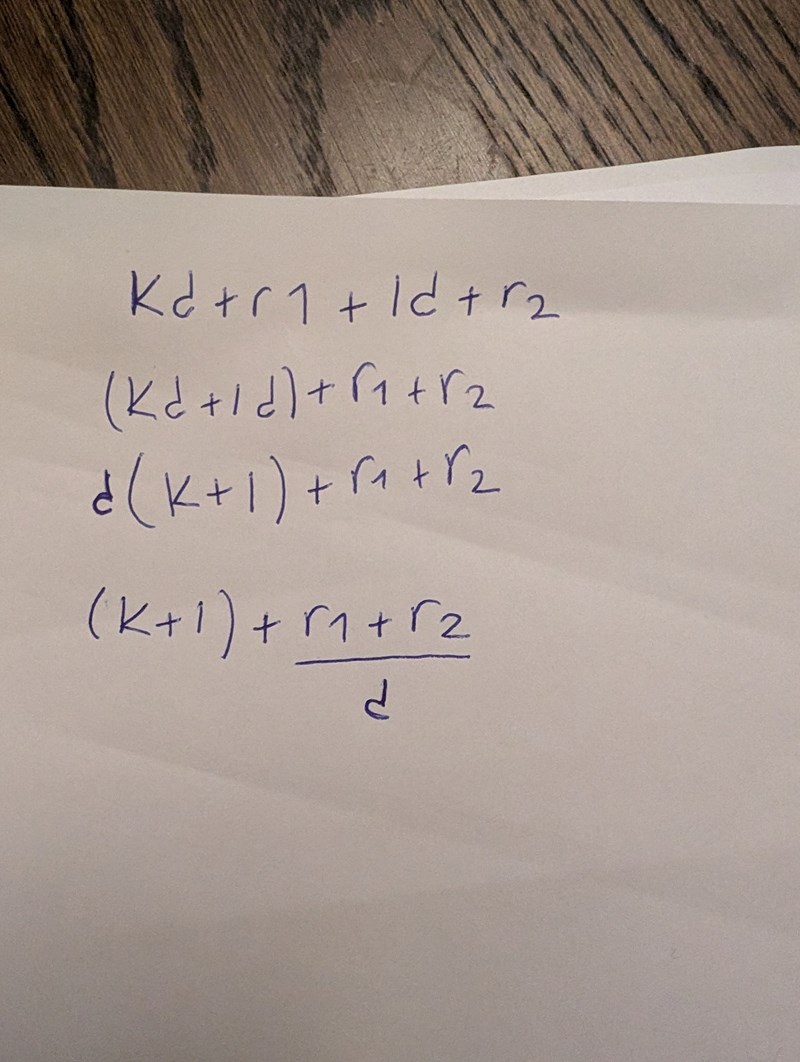 (a+b)-(r1+r2) = (k+l)d = konstant * d
