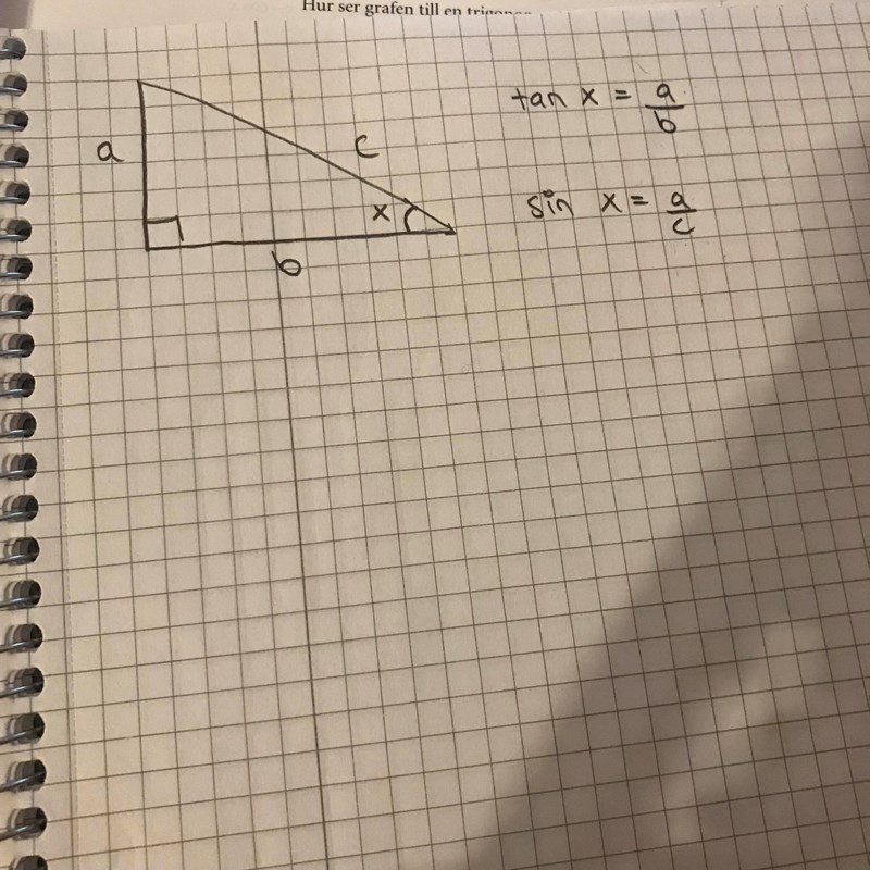Hej, jag ska visa att tan x > sin x för alla x i 0 < x < pi/2 och jag började med att rita en rätvinklig triangel. Men jag visst inte hur jag skulle fortsätta sedan.