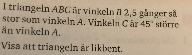 Jag vet att en triangel som är likbent har lika långa sidor men olika vinklar i det här fallet vet vi att: