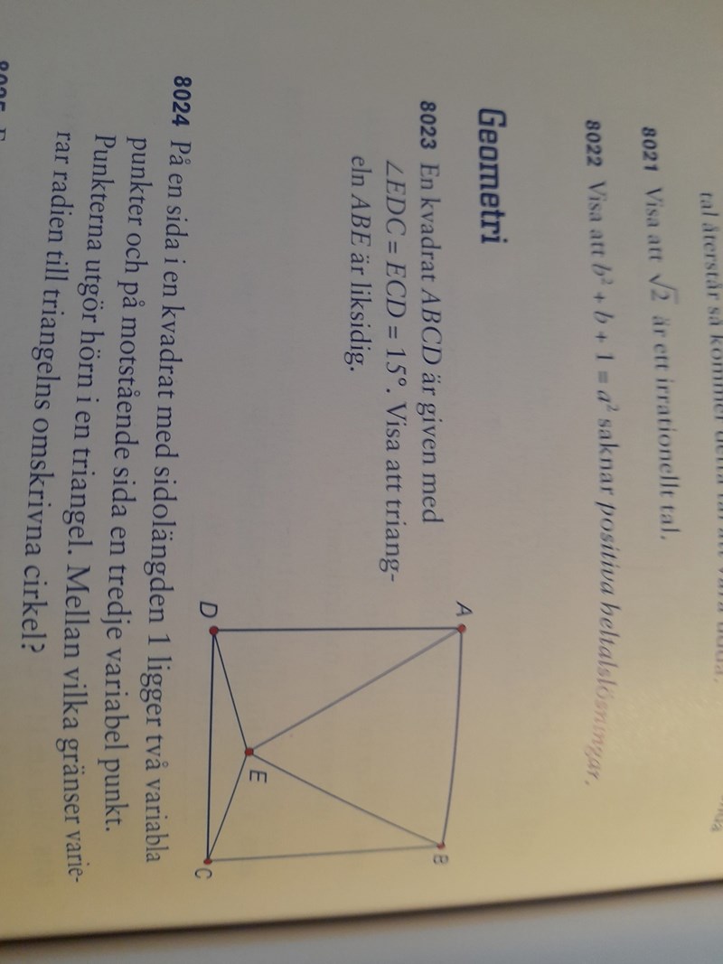 Börja med att beräkna vinklarna i den nedersta Δ CDE.