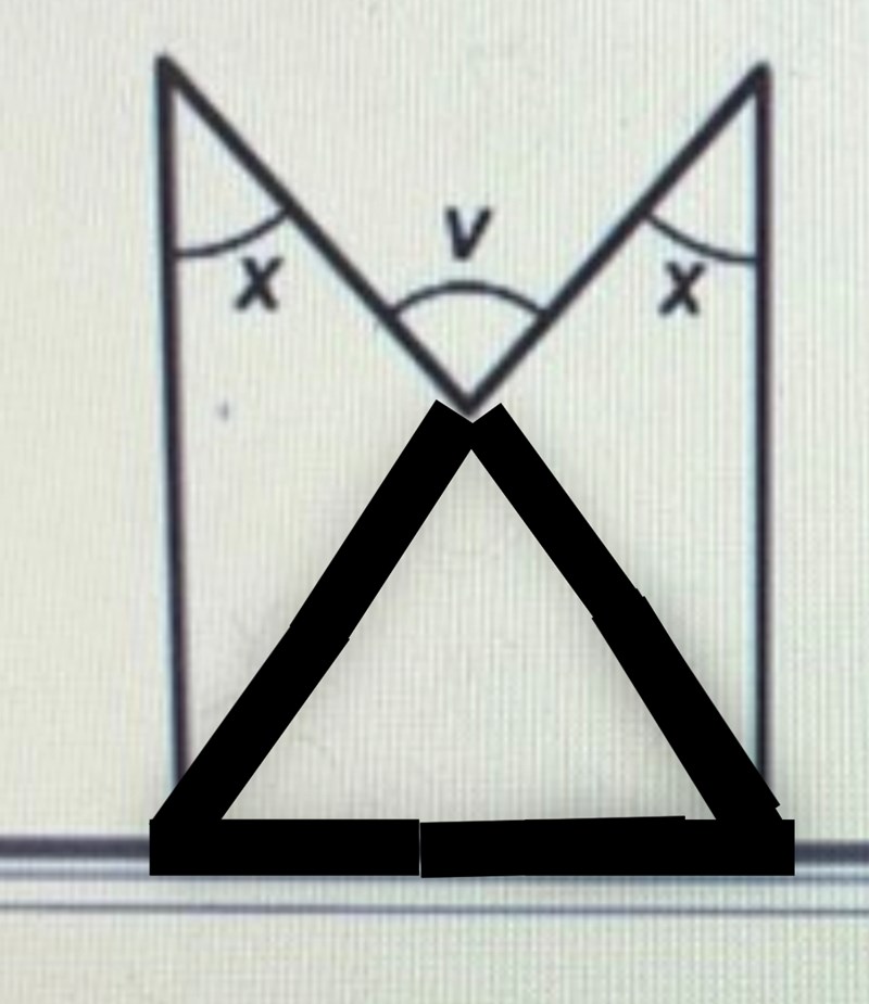Jag tror att du menar rätt, det är väl de två x:en till vänster i din bild som nu menar. Det är egentligen samma sak som att ta fram dessa två uttryck: v + y = 180 och x+x+y = 180.