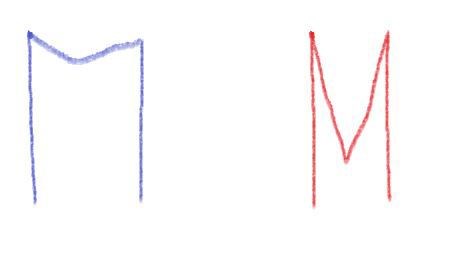 Regeln gäller både när mitten på M:et bara är lite lägre än punkterna A och D i din bild. Och även om mitten nästan går ända ner till punkterna B och E.