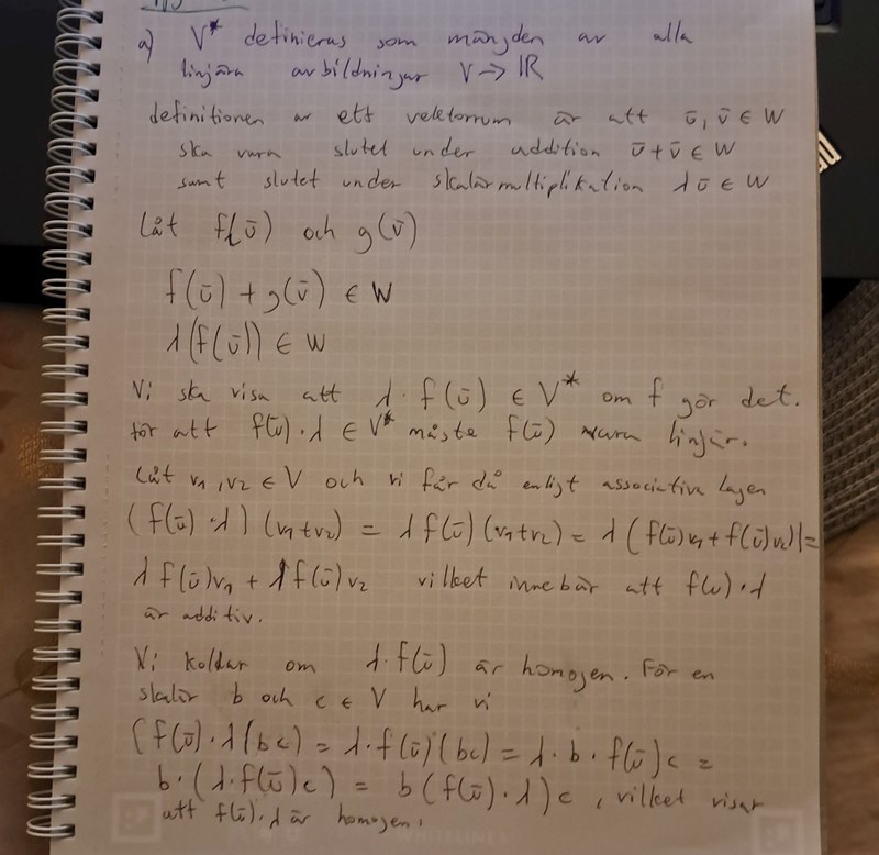 Bedinsis skrev:De har satt in att "detta kallas för dualrum" som en parentes i uppgiften, så definitionen av dualrum är den beskriven i uppgiften.