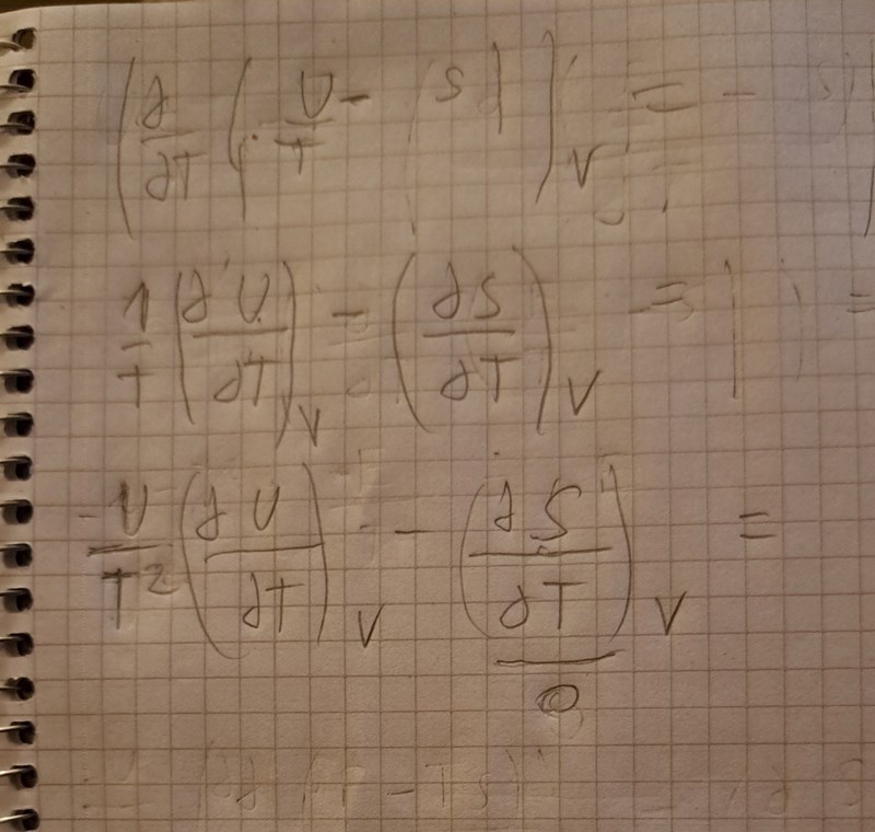 Men då får vi U*-1/T^2*(dU/dT)v-(dS/dT)v