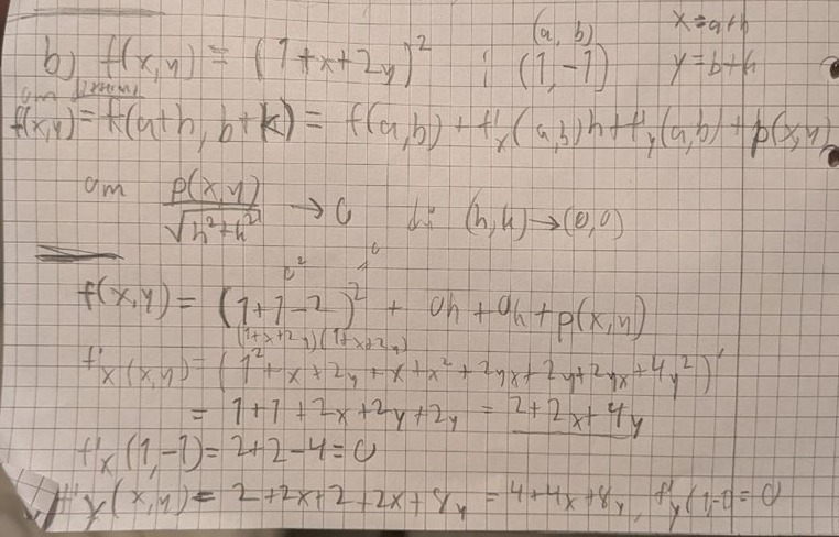 f(a+h,b+k)=f(a,b) + f'x(a,b)h + f'y(a,b)k + R1(a+h,b+k) = f(a,b) + Ah+ Bk + R1(a+h,b+k)
