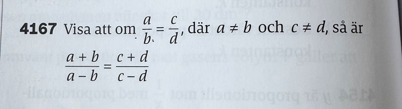 Vi har fått givet att a/b = c/d.