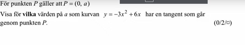 Visa för vilka värden på A som y=-3x^2 + 6x har en tangent som går genom punkten P