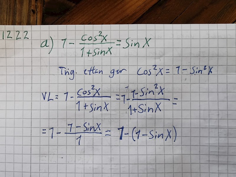 1 - (1 -sinx) = 1 + (-1)(1 -sinx) = 1+(-1+sinx) = 1-1+sinx=sinx