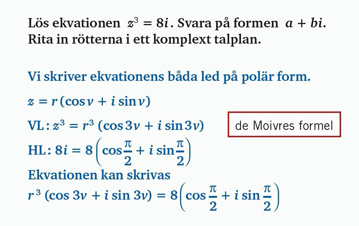 Alltså kan vi skriva 8i som 8(cos(π/2) + i sin(π/2)).