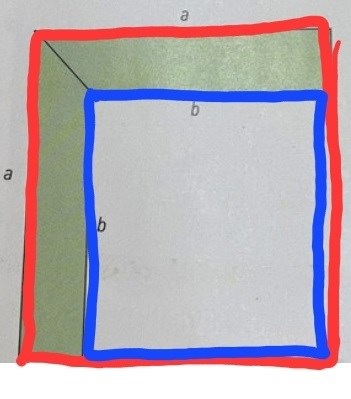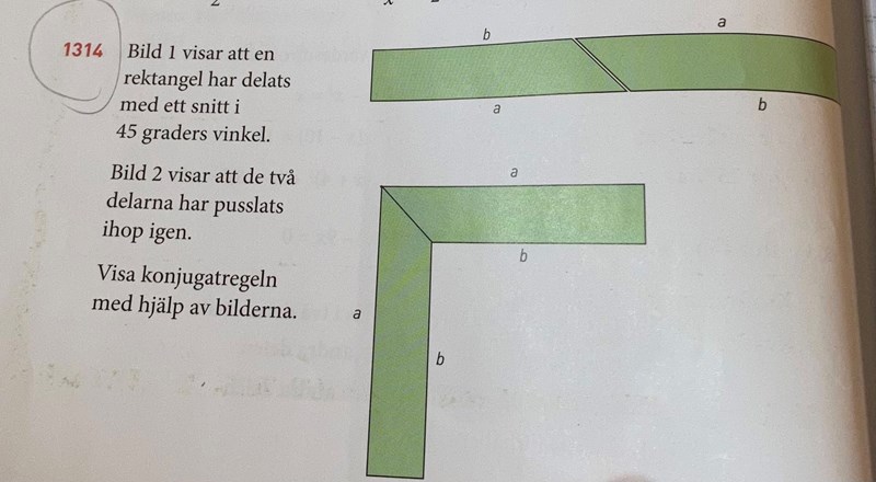 Jag vet att bild 1 har sidorna (a+b) och (a-b), och att arean=(a+b)(a-b), men hur hjälper det mig?