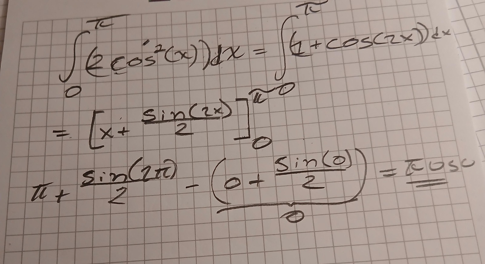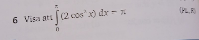 Dubbla vinkelns formel säger att , vilket medför att . Du behöver alltså integrera 1+cos(2x):