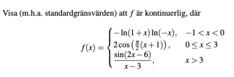 Visa (m.h.a. standardgränsvärden) att f är kontinuerlig, där