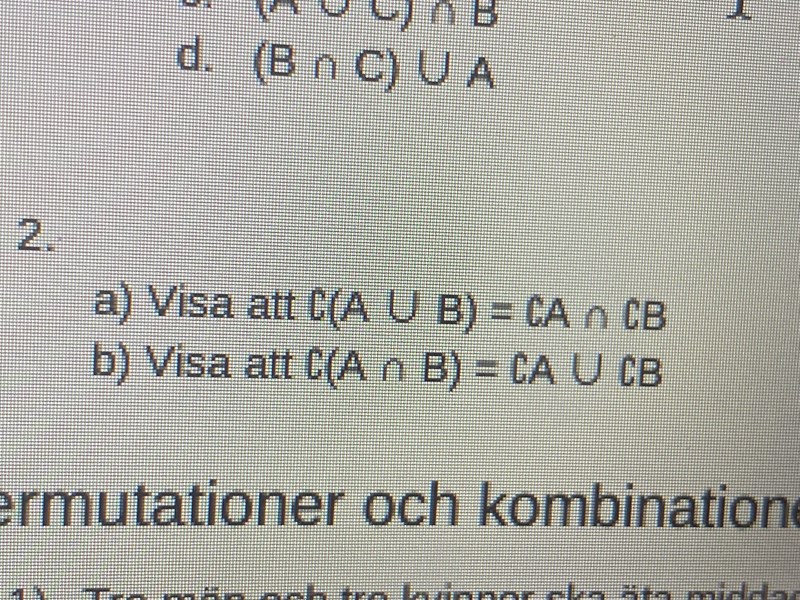 Finns det någon som är duktig på mängdlära och kan hjälpa mig. Chansar på att detta är en A fråga som kräver att man tänker och analyserar, men förstår verkligen ingeting av denhör frågan;( Det är fråga 2 jag behöver hjälp med. Tack på förhand