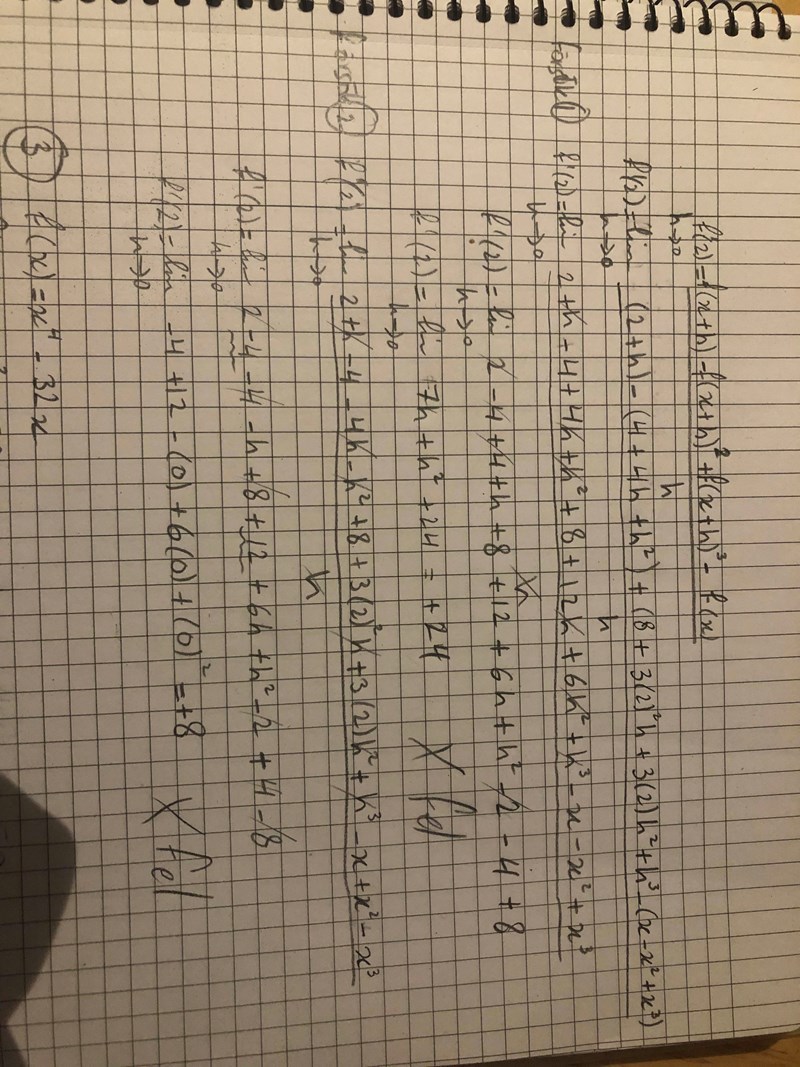 Sakura skrev:Engineering skrev:Ja där f(x) är x^2 och x^3 i de som efterföljer f(x+h)^2 resp. f(x+h)^3