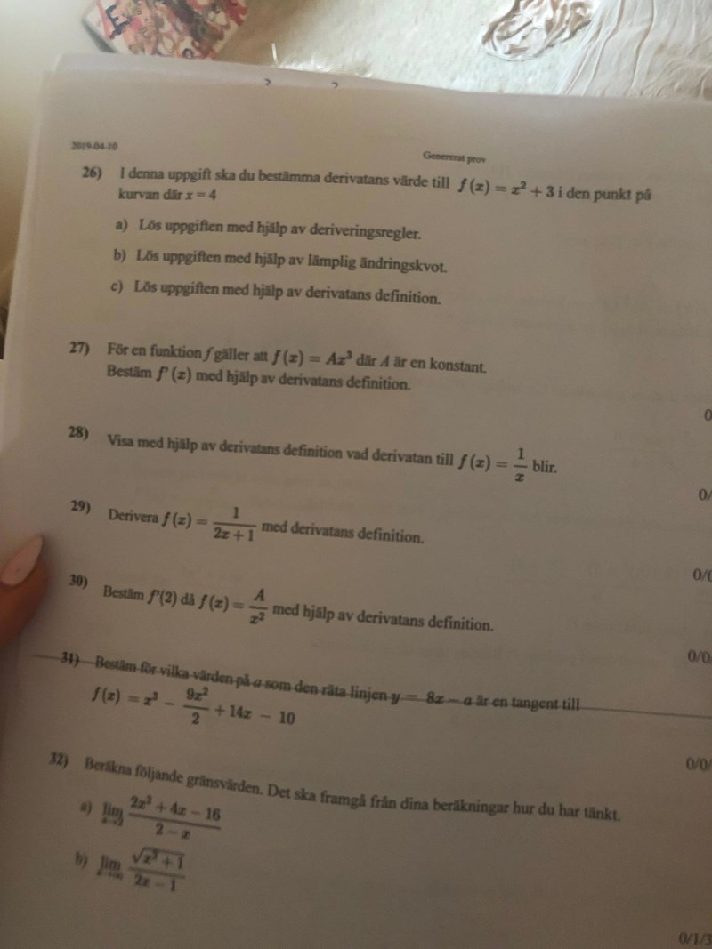 har gjort så men det blir fel! (Vet också att man ska skriva lim h->0 hela tiden och ha h i nämnaren men har bara gjort så just nu)