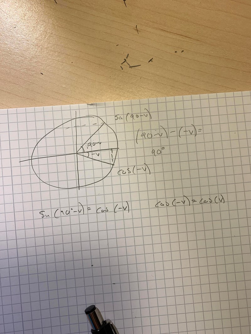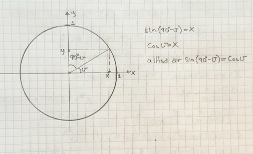 uppgiften lyder ”visa med hjälp av enhetscirkeln att sin (90°-v)=cos v