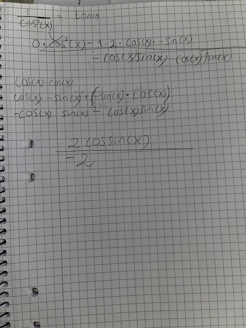 Men vad är det du har gjort, har du försökt att derivera 1/cos2(x)?
