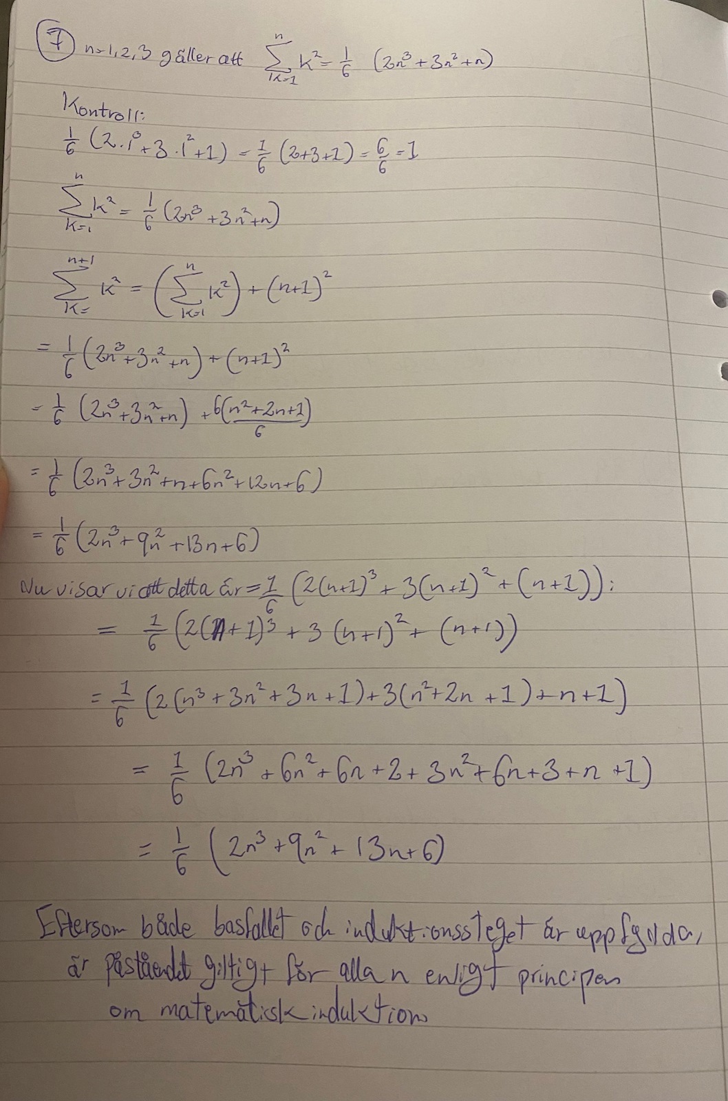 Visa med hjälp av induktionsbevis att följande påstående gäller: