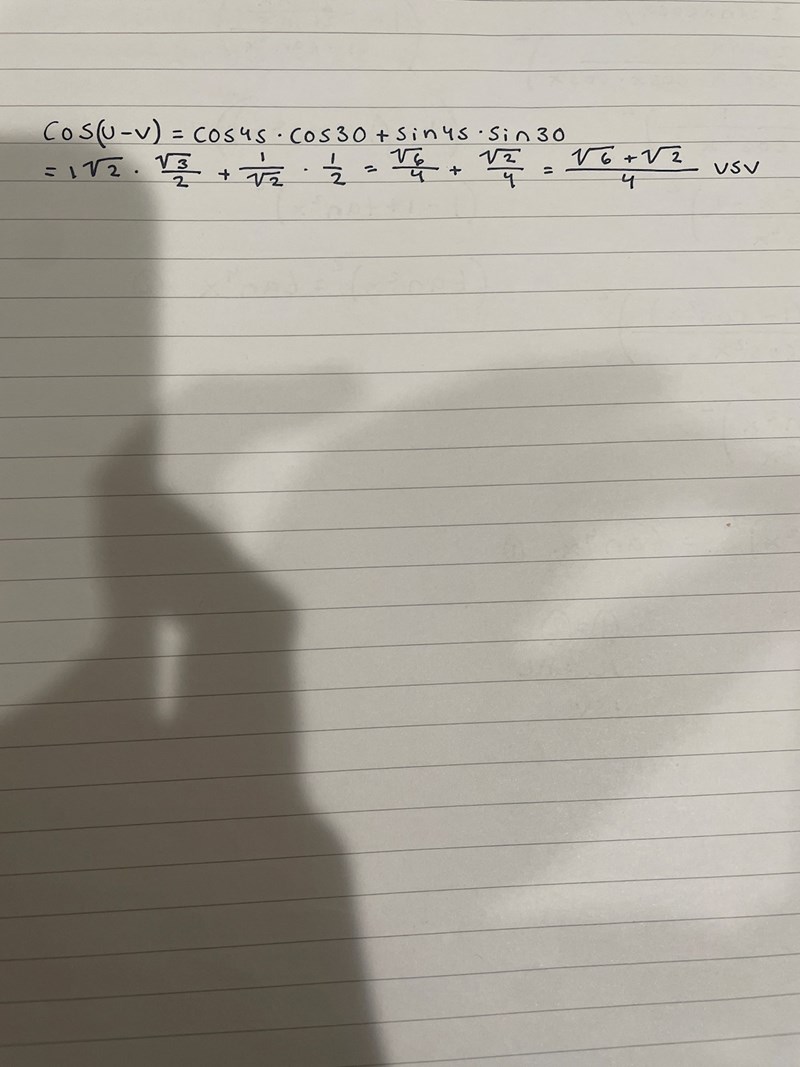 cos 15° = cos (45°–30°)