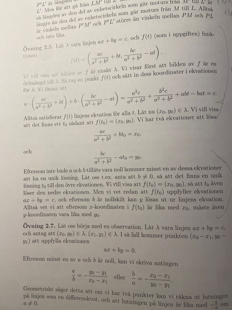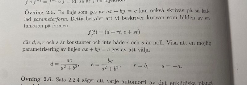 Hej! Jag har lyckats visa att parametriseringen är på den rätalinjen men i facit vill de även att jag visar att f(t0) = (x0, y0). Jag kanske misstar mig men det innebär väl att jag visar att de båda funktionerna är lika med hjälp av ett okänt t?