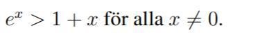har flyttat över allt till VL och satt f(x) = e^x - 1 - x som ska ge f(x) > 0 för alla x skilt från 0