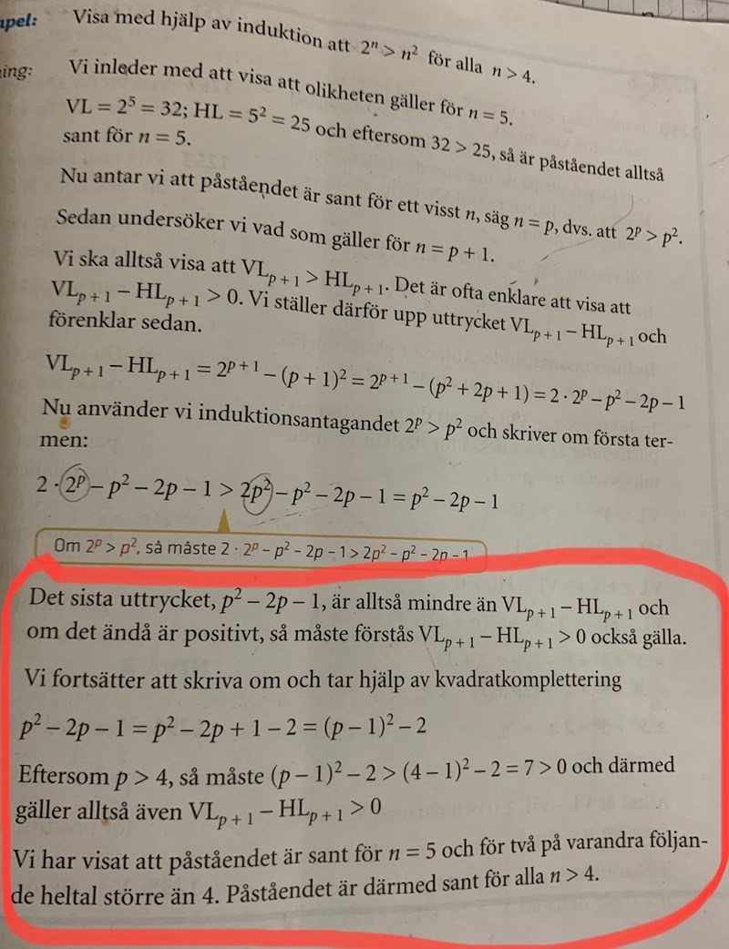 Hej, jag har försökt förstå mig på detta med att visa olikheter med induktion, men jag fattar inte trots att jag kolla på flera videor om detta osv. Jag hoppas någon kan förklara tydligt steg för steg hur man gör. Allt inuti den röda ” ringen ” är vad jag inte förstår.