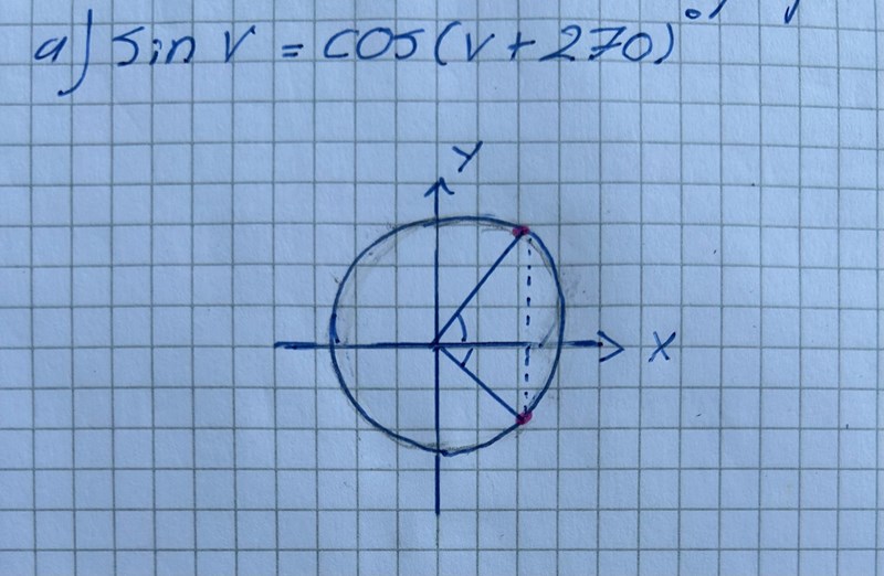 Ja jag började med att bara rita en triangel i en kvadrant eftersom det inte ges i vilken man ska sedan går jag 270 grader till nästa vinkel, ja bilden fungerar, ska jag rita upp sin (v) också i cirkeln