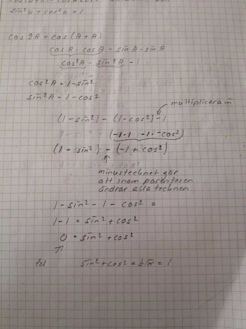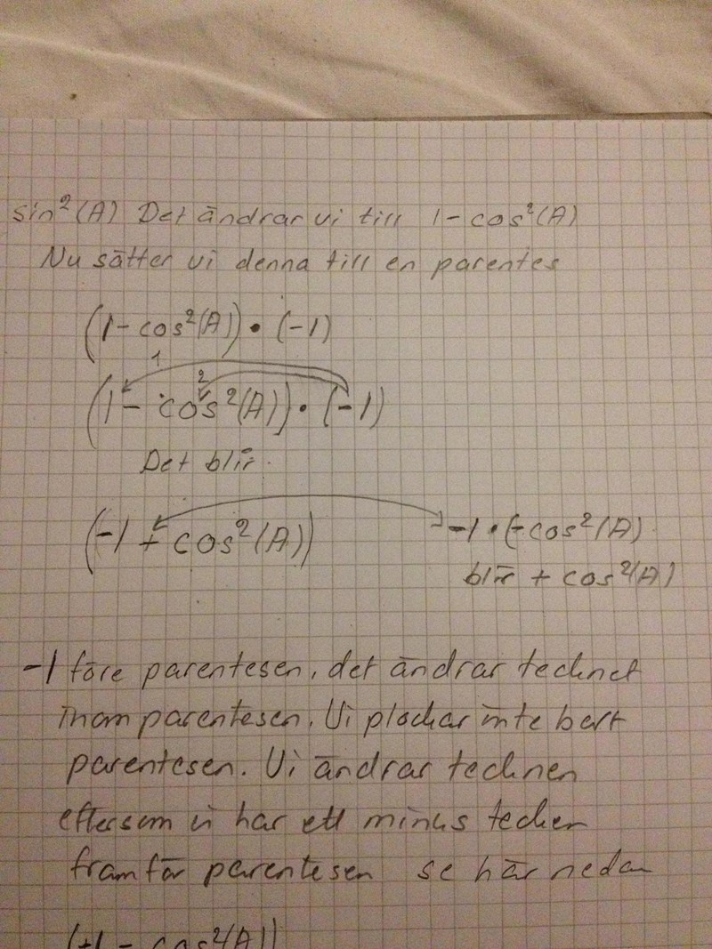 ändrar man cos ^2(A) får man 1- sin^2(A)