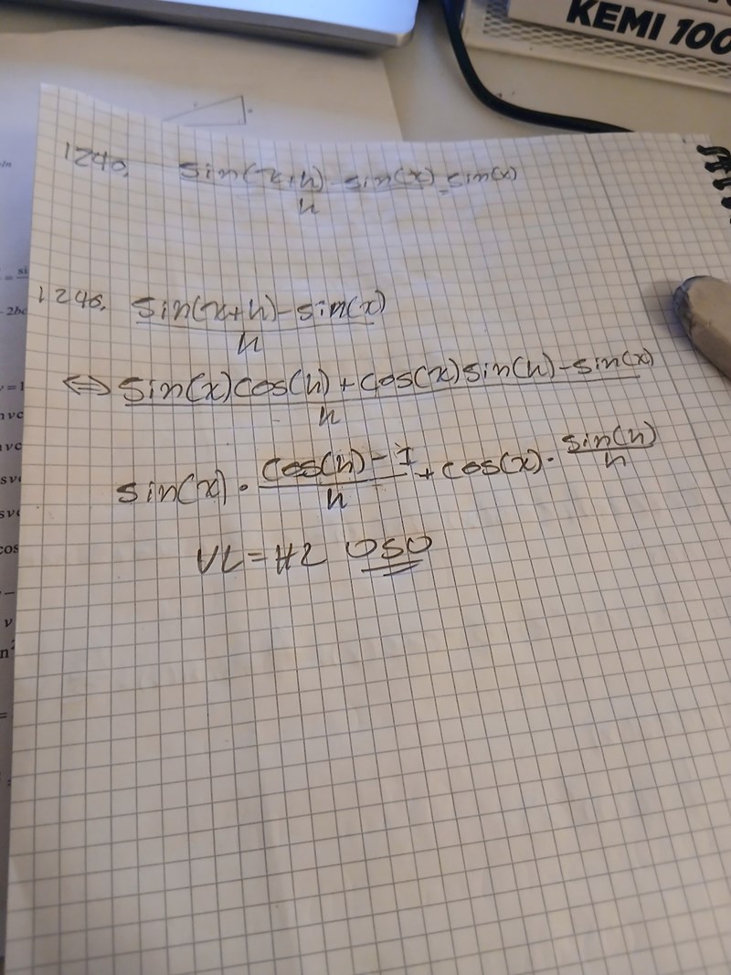 Testa sin(x+h)=sin(x)cos(h)+cos(x)sin(h)