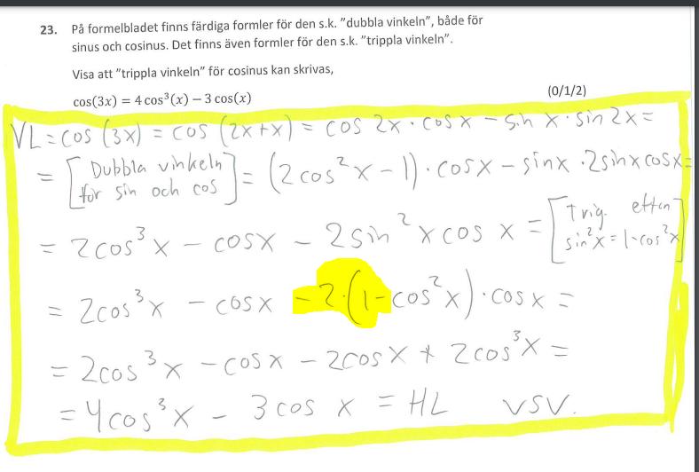 Vad är det som händer med -2 *1?? Den försvinner ju helt i facit eller? jag får det till 4cos^3x-cosx-2 ?! Eller hur tänker jag fel?