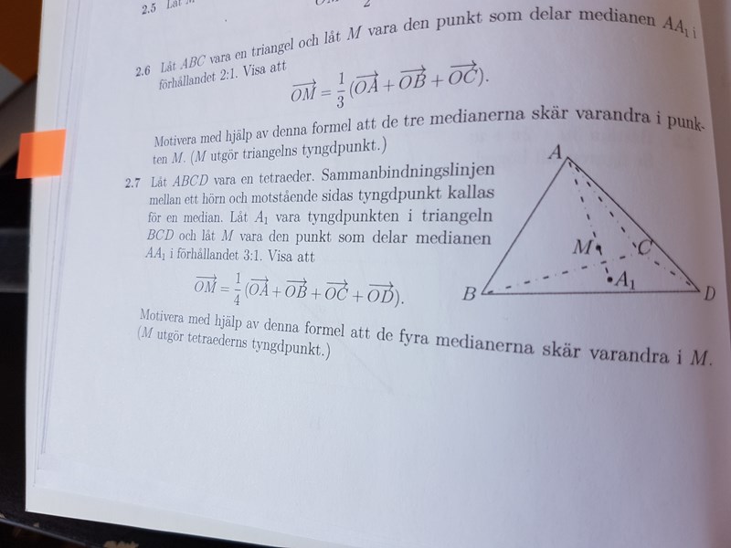 Tänkt: OM = OA + AM = OA + (3/4)AA(1) =