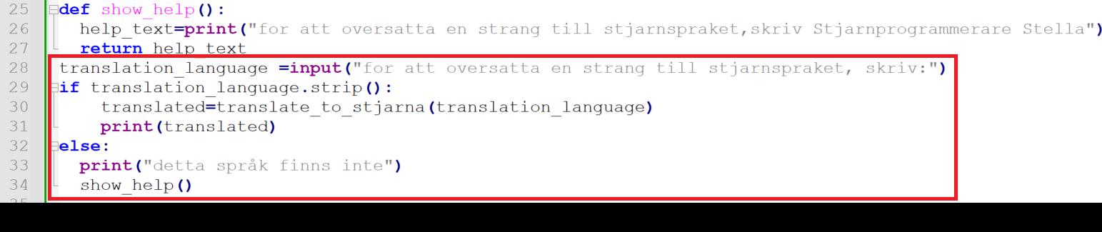 help_text=print("for att oversatta en strang till stjarnspraket,skriv Stjarnprogrammerare Stella")