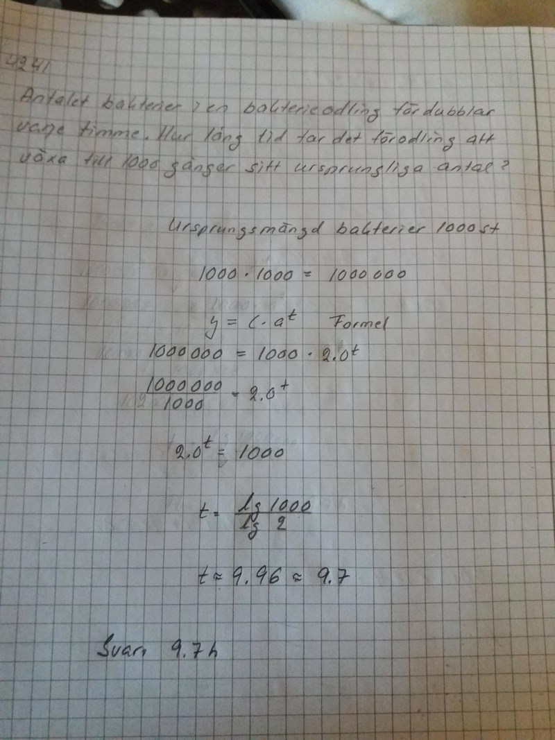 1. Kontrollera ditt svar. Kontrollera alltså om är lika med 1000.
