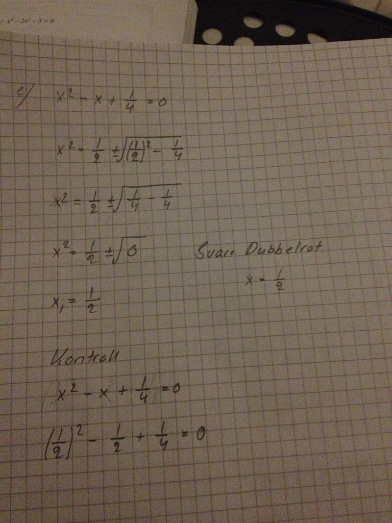 Päivi skrev :Det påminner andragrads ekvation fast det gick till minus sidan och då skulle bokstaven i användas.