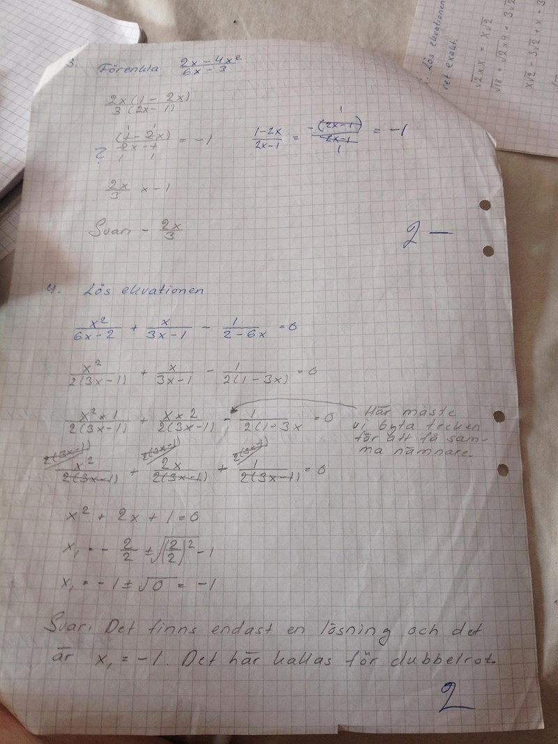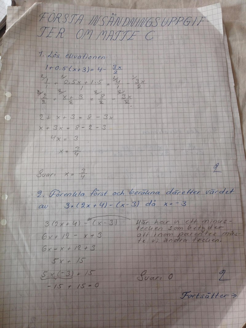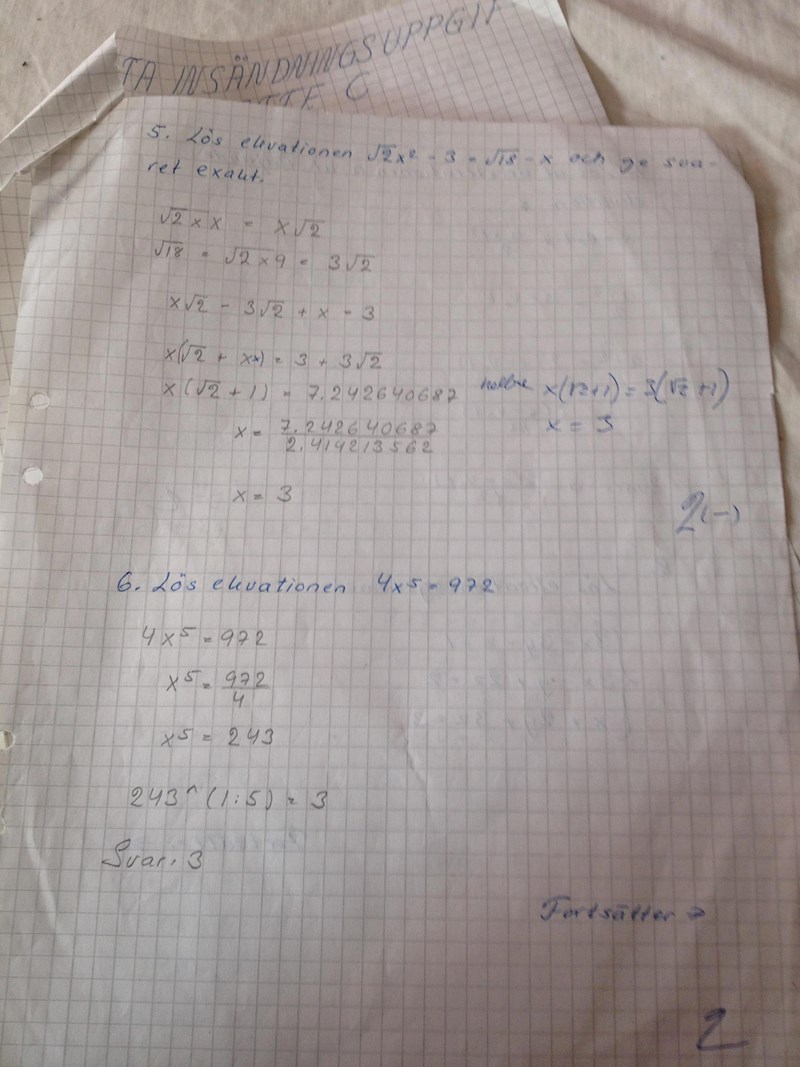 De andra insändnings uppgifterna har inte jag gjort. Jag tänkte ta göra prövning på matte 3 framöver, men jag måste läsa in mer.