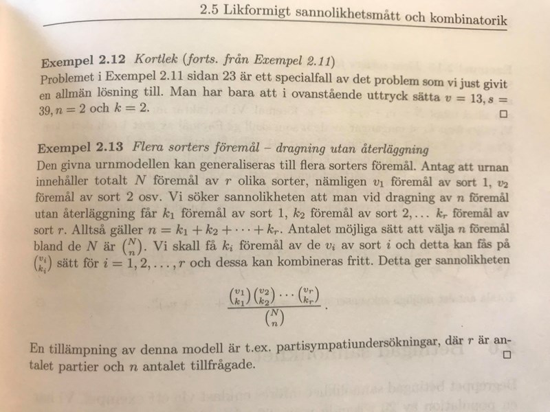 N över n, som det står i exempel 2.13 så är N totala antalet föremål dvs 7 och n är k1 + k2 dvs 1+1