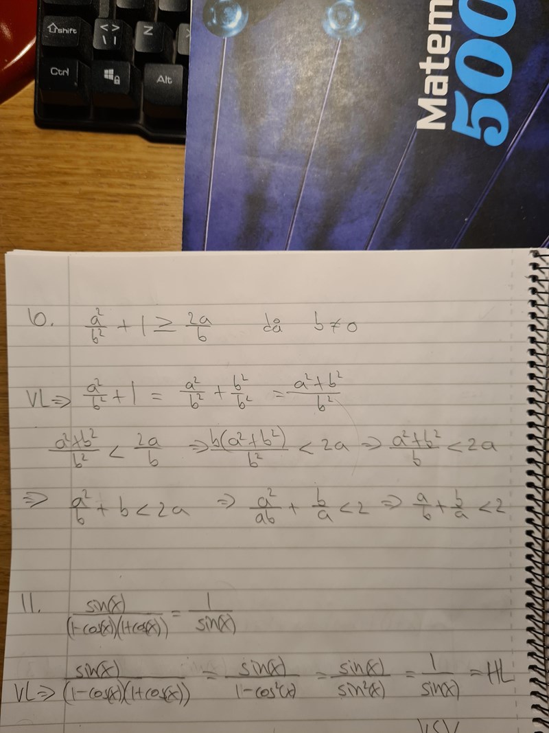 I denna uppgift ska man bevisa att VL är större eller lika med HL. Variabeln b får inte vara noll. Hur går man tillväga? Jag har förenklat vänsterledet, men kommer inte vidare. Hur ska man bevisa det som efterfrågas? Det är alltså uppgift 10 som jag behöver hjälp med. Jag har försökt med motsägelsebevis, men kommer inte vidare.