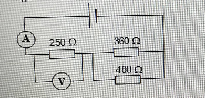 Du har räknat ut vad voltmetern skulle ha visat om den var inkopplad parallellt med 360Ω-motståndet, men på bilden är voltmetern inkopplad parallellt med 250Ω-motståndet.
