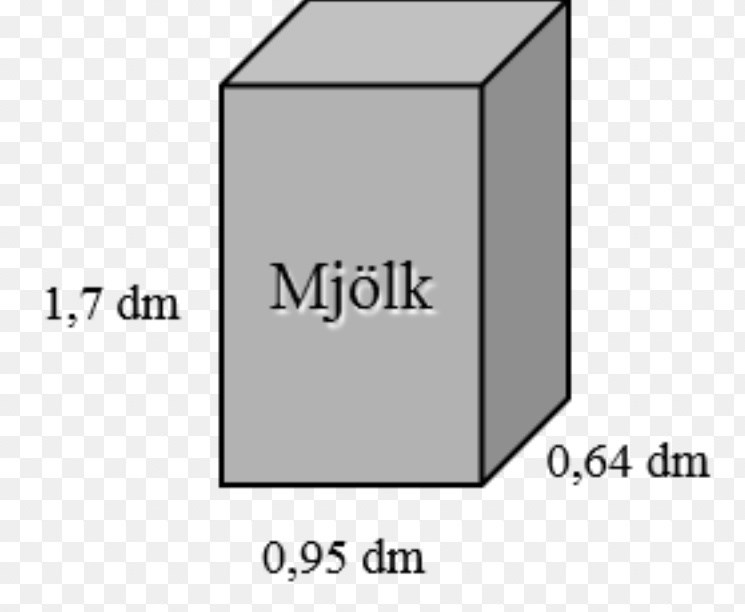 En dm3= dm^3 = 1 liter (l). Du ser det på nedanstående bild av ett enliters mjölkpaket. Vidare gäller att: