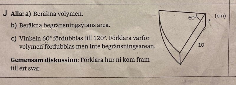 Smaragdalena skrev:yarish skrev:Louis skrev:Ja, volymen är cirkelsektorns area gånger höjden.