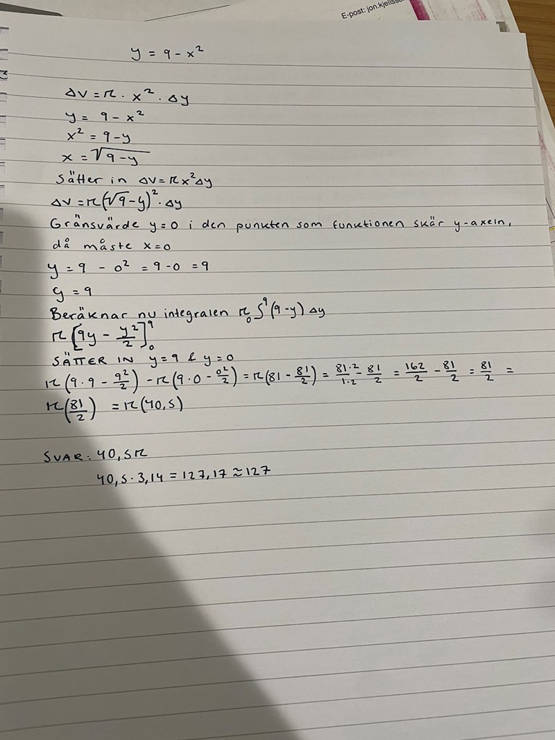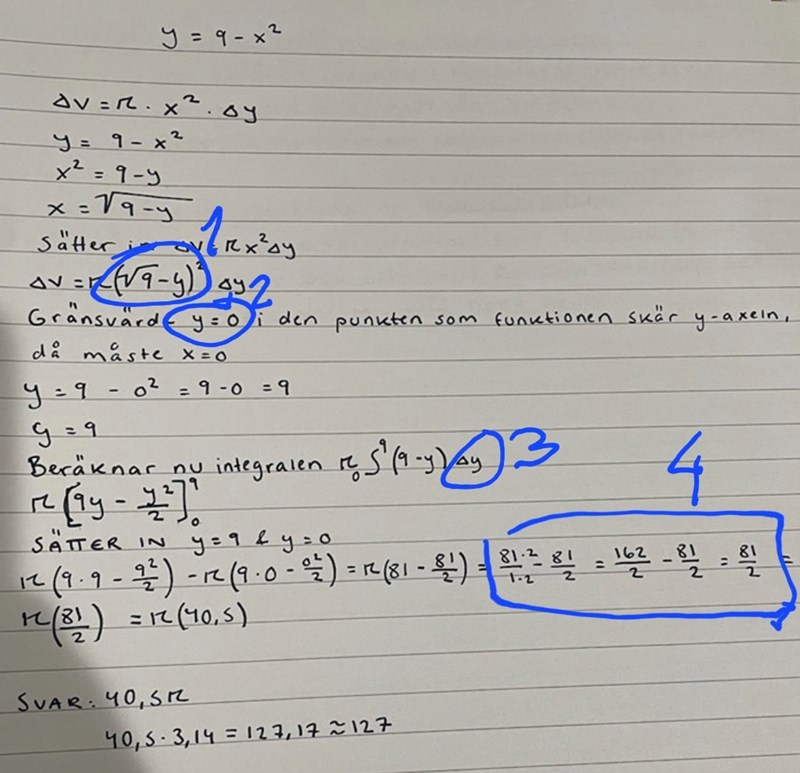 Okej så vid 1 ska det inte vara pi innan och y efter? Y=9 men x=0 fortfarande? Blir svaret i slutet ändå rätt?