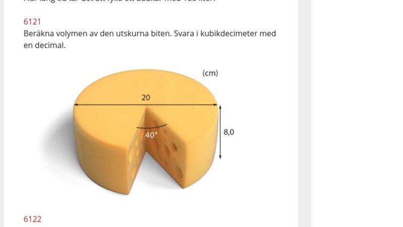 Hej hur ska jag räkna ut detta, kommer inte på ett sätt, men enligt fasit står det 32*pi/360. Hur kom de fram till det? Förstår att de ska ta det /360 eftersom osten är cirkulär...