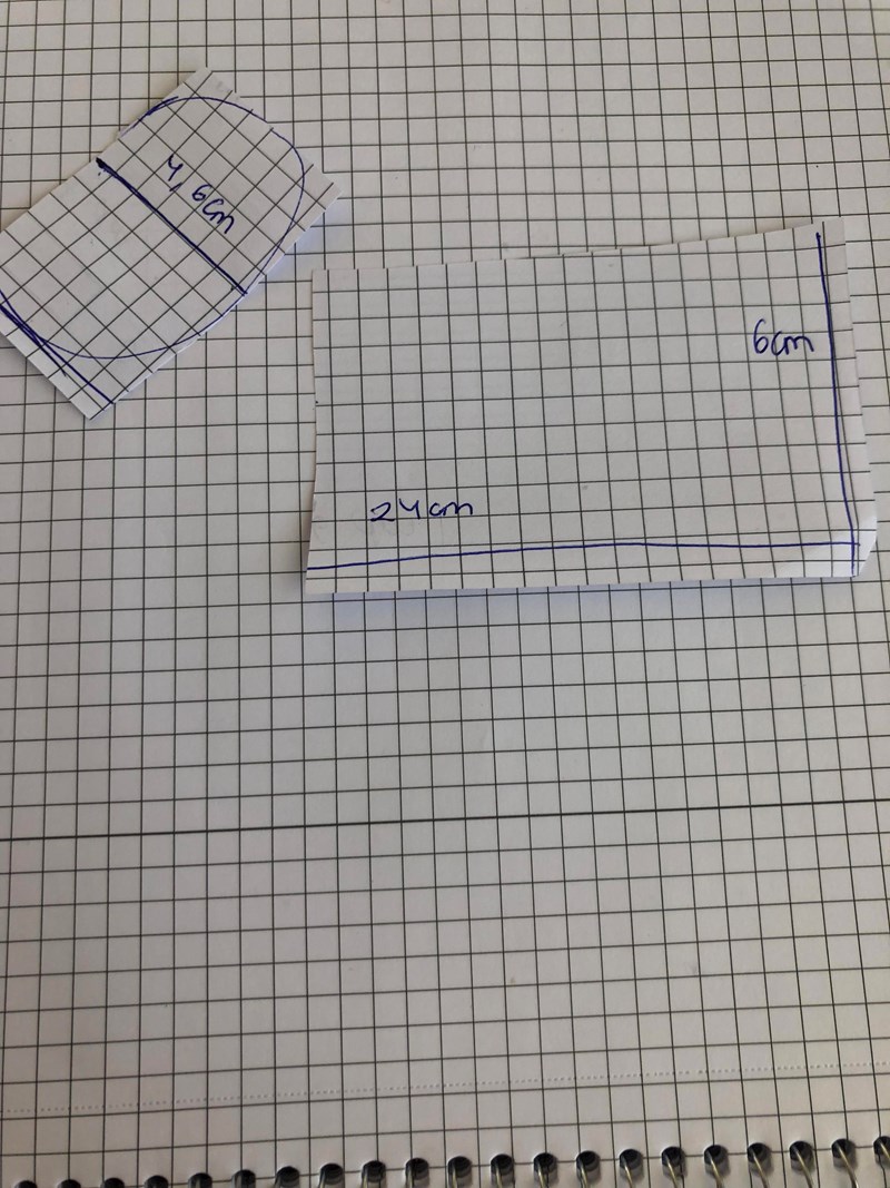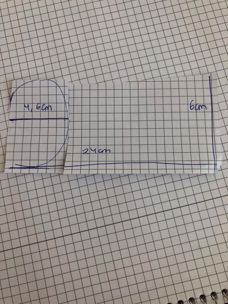* Vi vet att diametern av cirkelbotten är 4,6cm. Hur kan man då veta att med en bredd på 6cm veta att man kommer kunna klippa ut den?